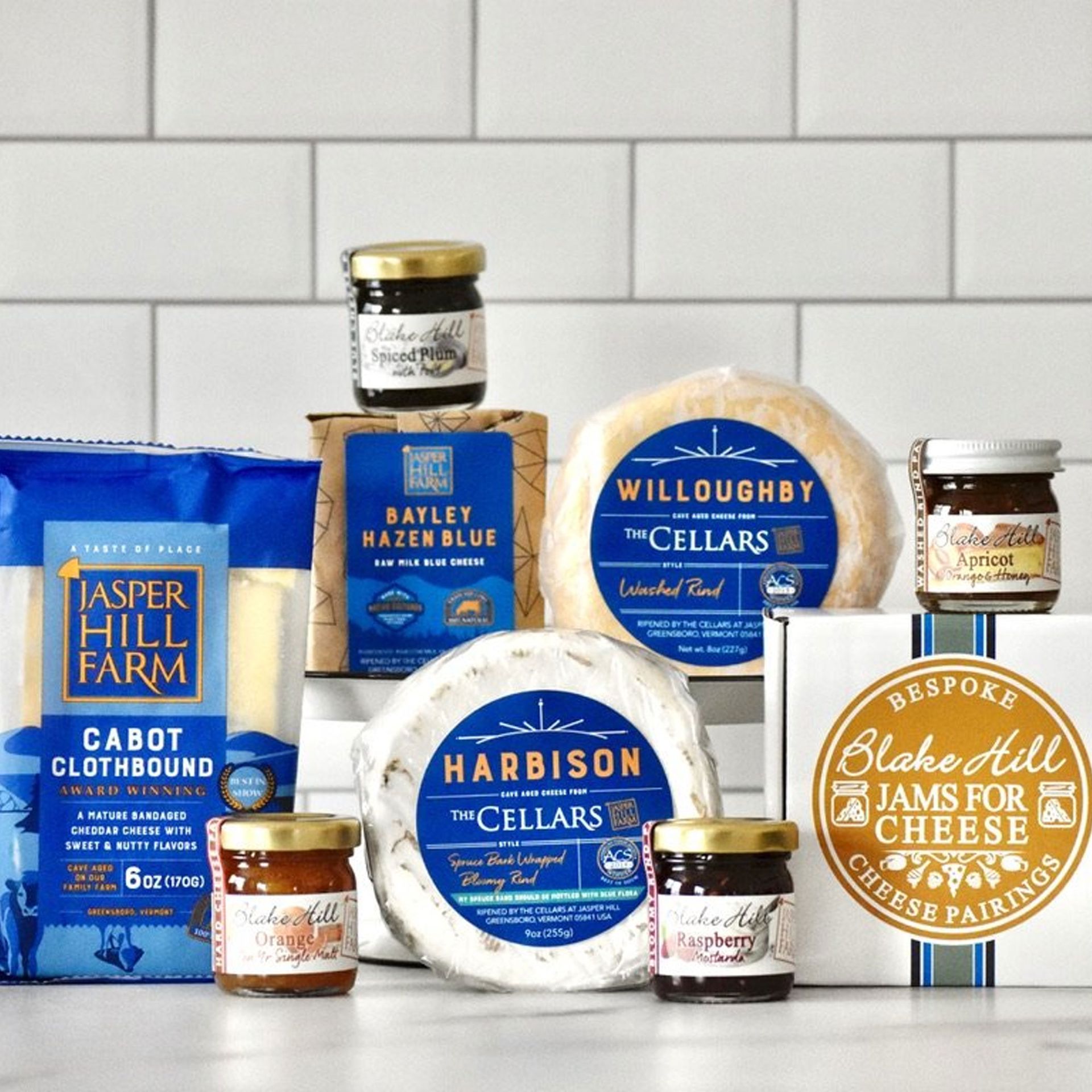 From Jasper Hill dairy farm in the Northeast Kingdom of Vermont, this scrumptious cheese basket comes with a selection of cheeses, including Bayley Hazen Blue and Cabot Clothbound Cheddar - with each cheese paired with a bespoke preserve to enhance the flavor.