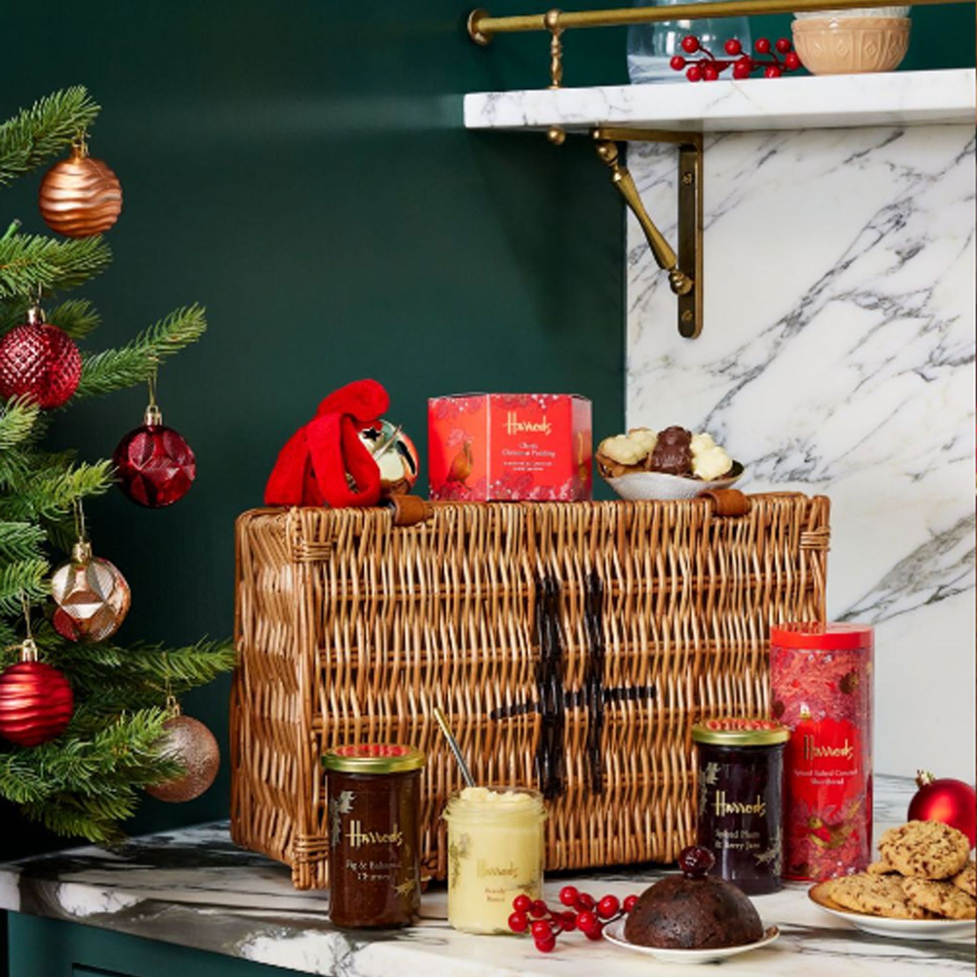 Specializing in all things luxury, from clothes to Christmas gifts, this Christmas basket from Harrods contains indulgent festive delights both sweet and savory, from spiced salted caramel shortbread to fig and balsamic chutney.