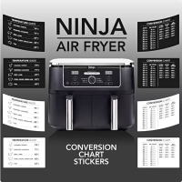 This simple sticker provides all the oven-to-air fryer temperature and time conversions you need conveniently shaped to be stuck to the side of your air fryer