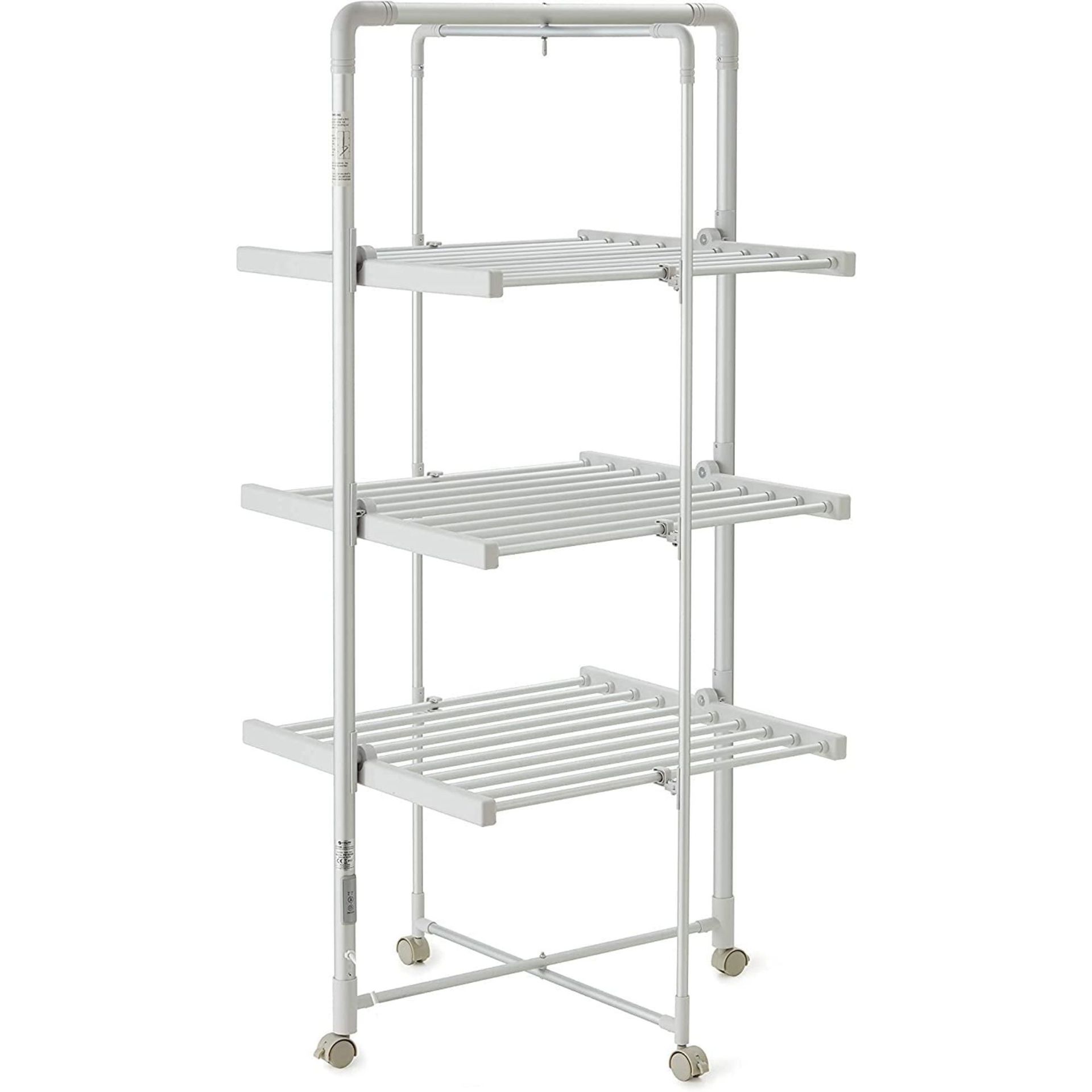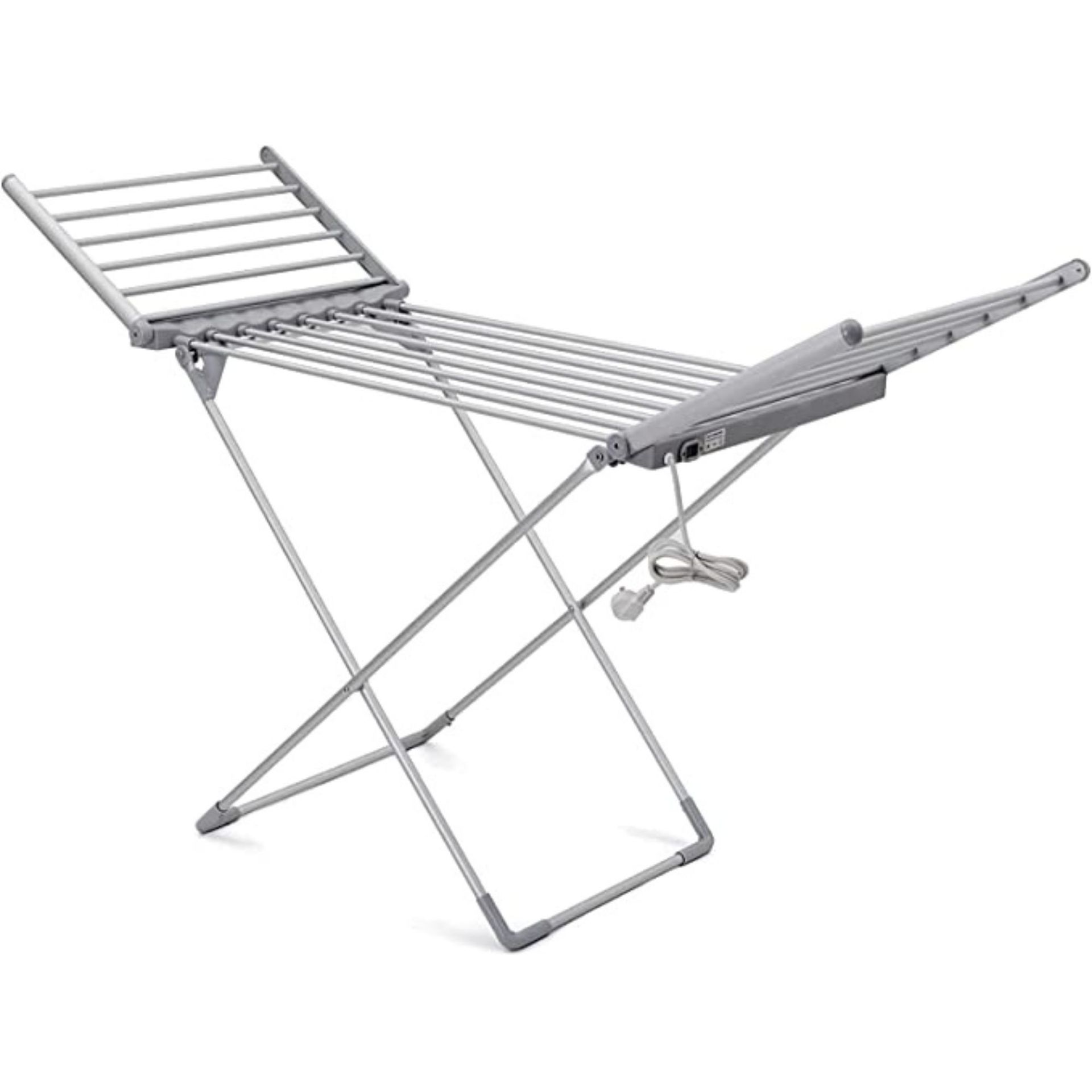 A three-tier heated clothes rack with 30 heated aluminum rails so you can do a large family wash and air-dry without clothes smelling damp, plus it's much kinder to your clothes than a machine dryer