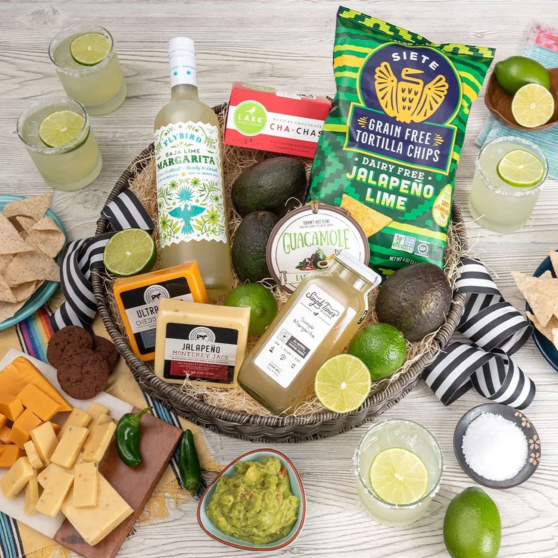 If you're pushed for time, this Mexican-themed snack basket offers ready-made magaritas, as well as guac, chips and cheese.