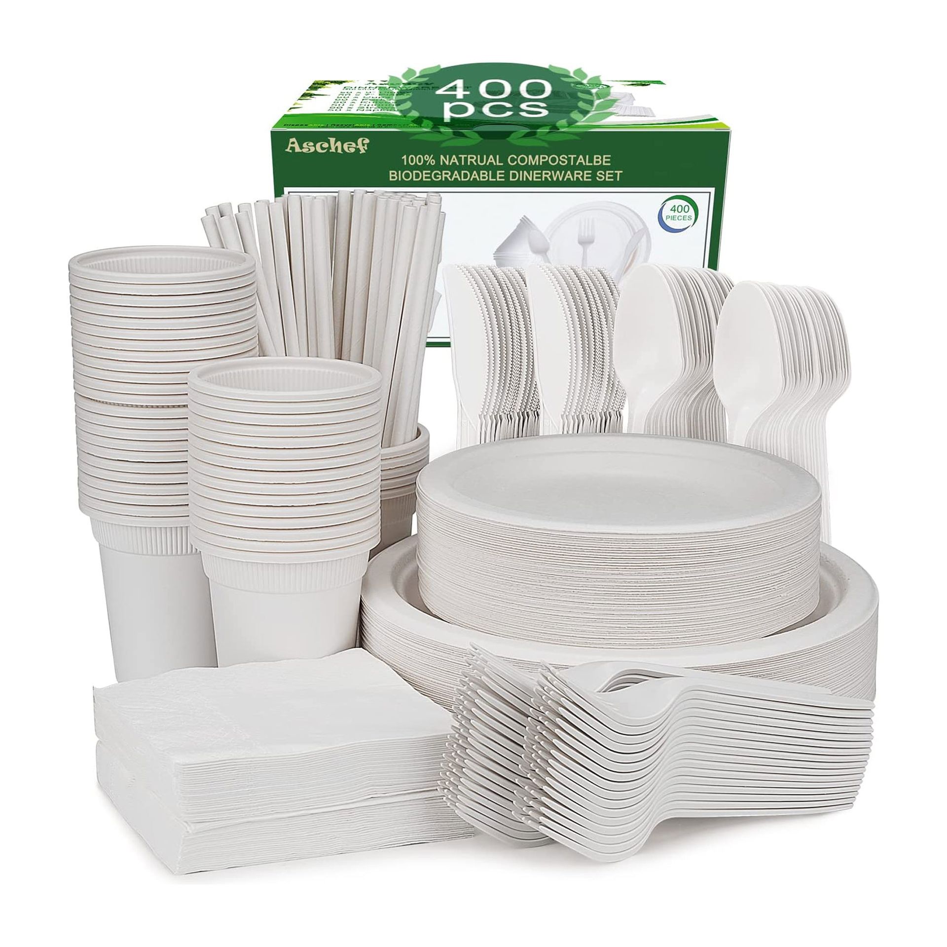 Disposable tableware isn't always eco-friendly, but this set is fully biodegradable, reducing your carbon footprint.