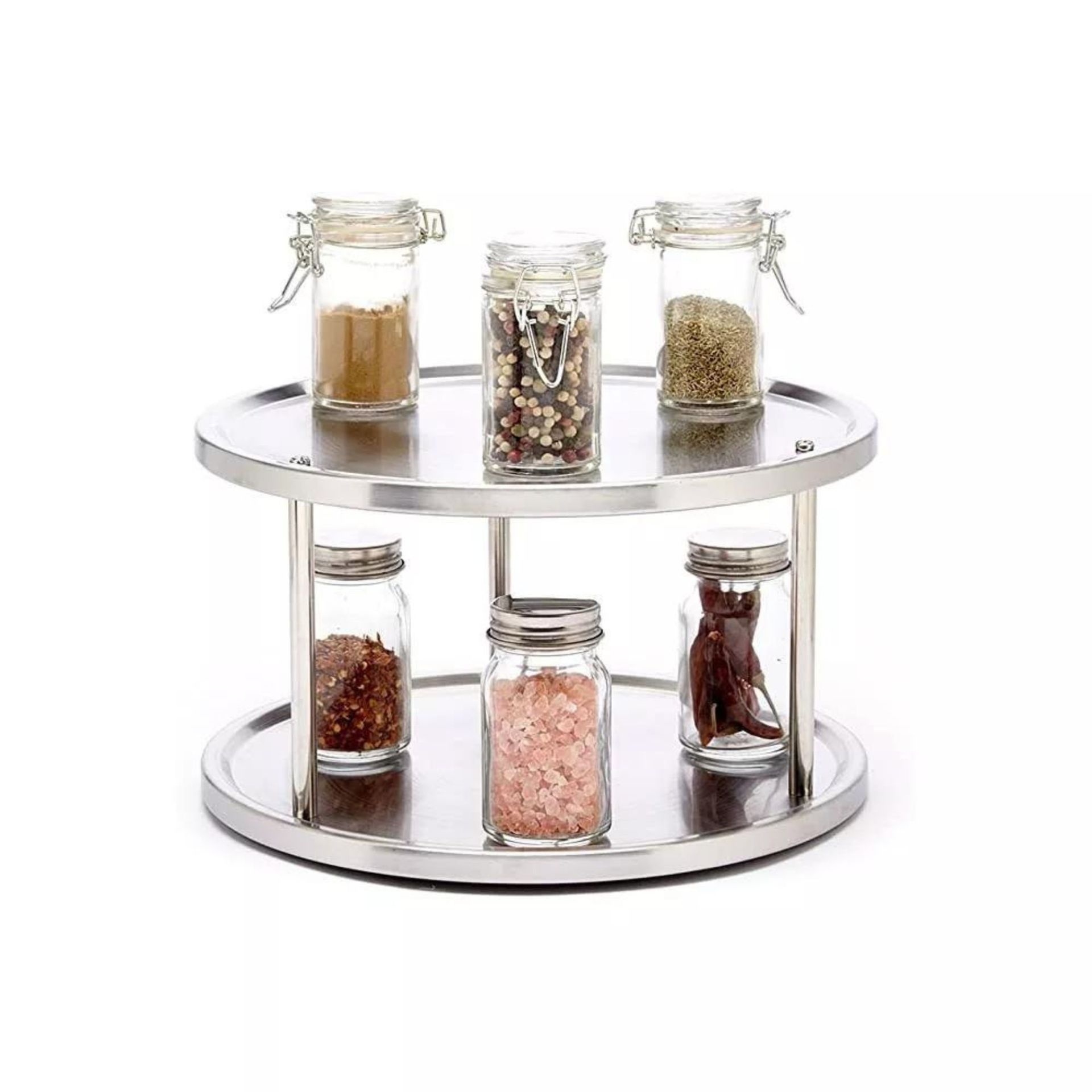 This two level 360 degree organizer is perfect for having easy access to all your spices, snacks, oils, dressings, and more.