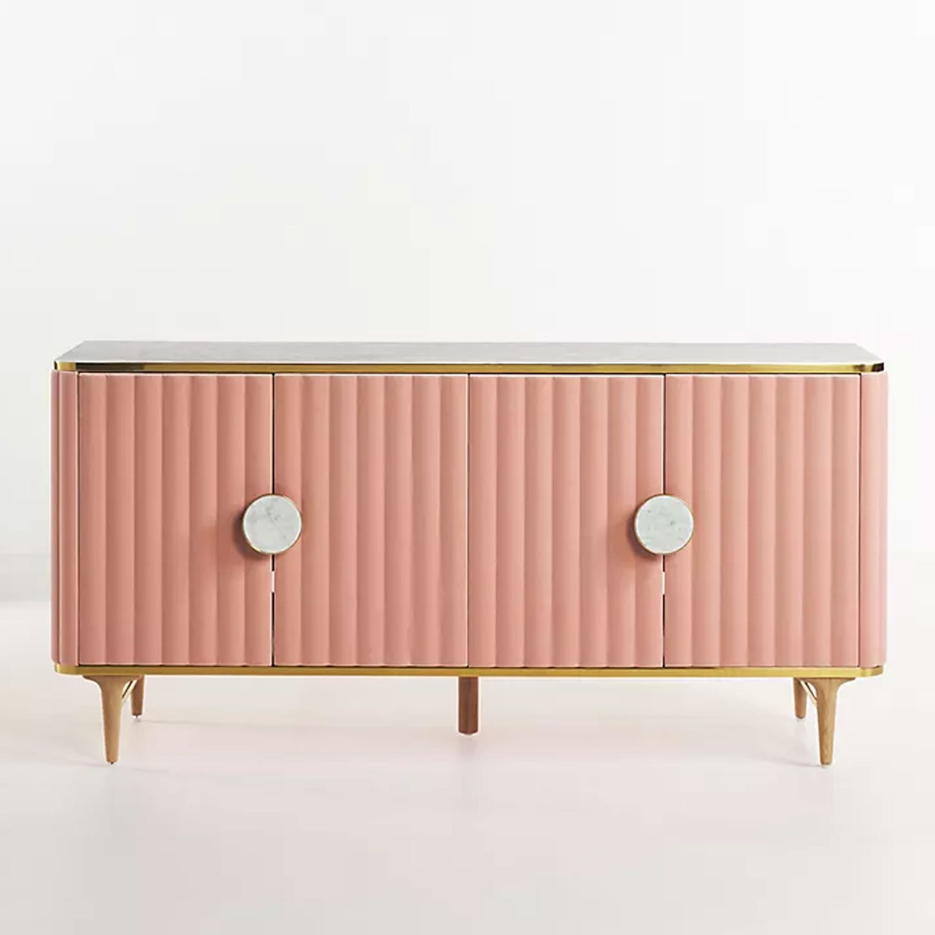 If you're looking for a more colorful TV stand then the Juneau Velvet Buffet from Anthropologie is for you. Available in Blush (pictured), Dark Turquoise, or Green, this design will be sure to elevate your TV in an eye-catching, colorful style.