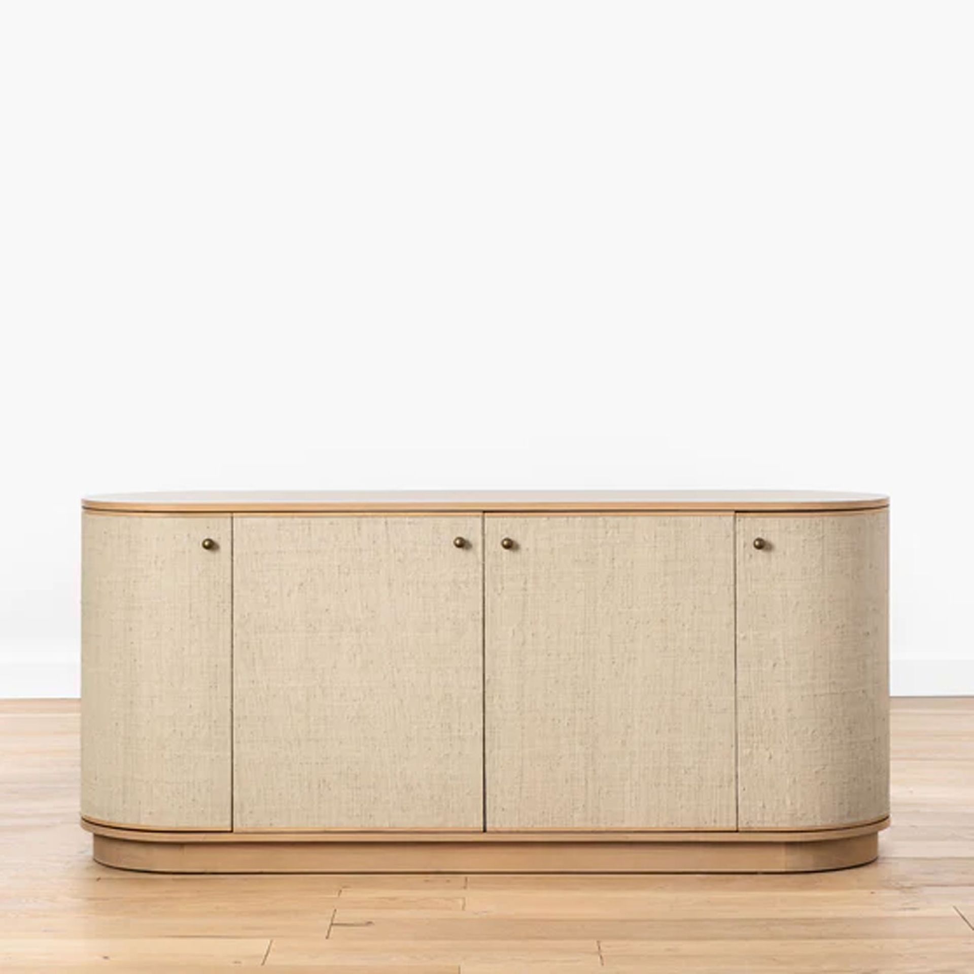Curves are one of the biggest interior design trends for 2023, and this sleek sideboard from McGee & Co makes for a great addition to a living room or bedroom. Made from white oak and wrapped in a natural grasscloth, the natural design makes for a grounding base for your TV.