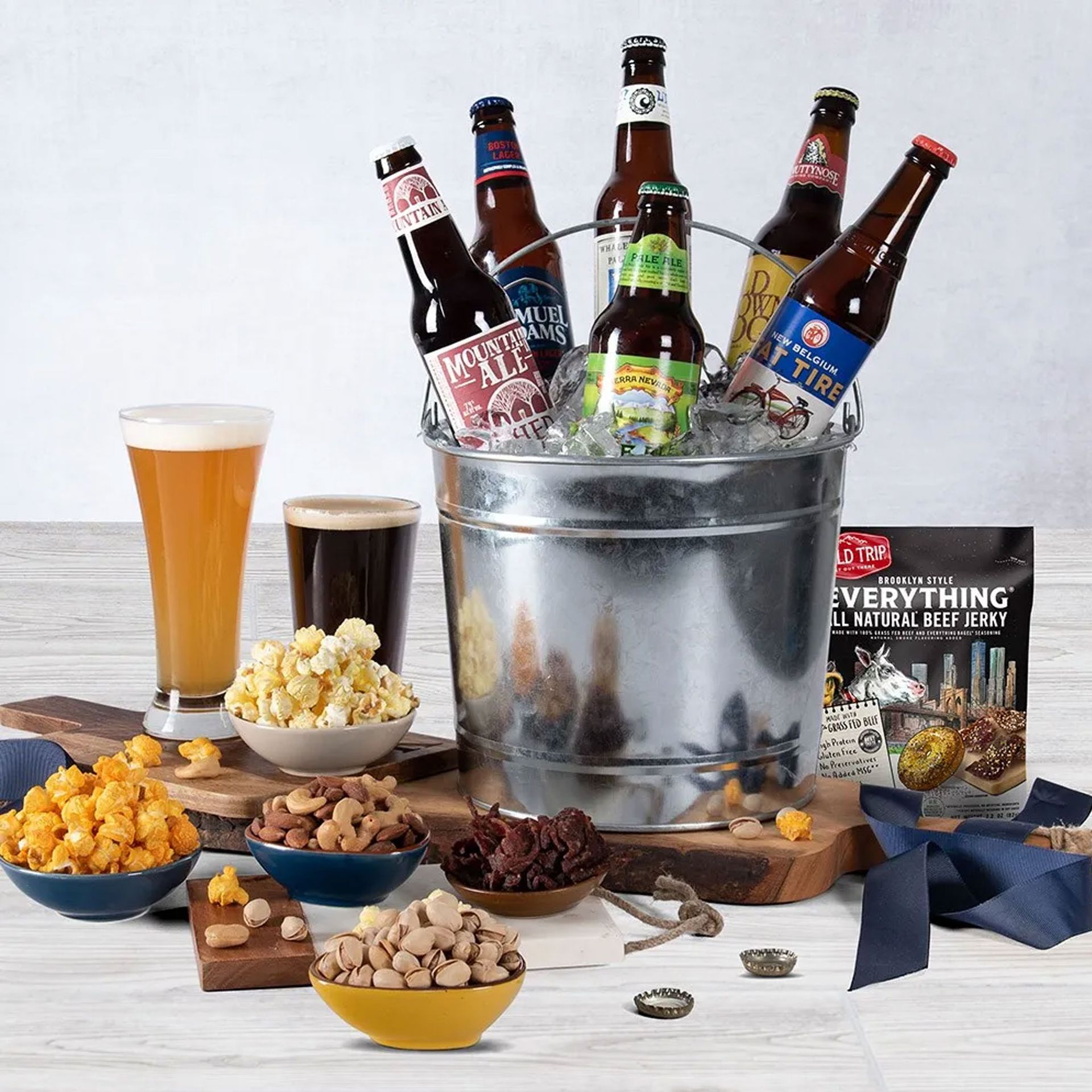 Champagne isn't for everyone. This selection from Gourmet Gift Basket contains six delicious microbrews and collection of savory snacks to enjoy alongside.