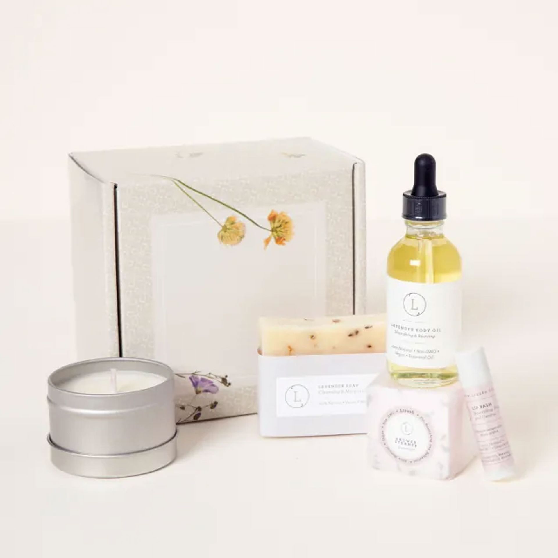 A Little Pampering Gift Set is the perfect accompaniment for a cozy night in with the girls, or for future use when you're in need of a little self care. Includes body oil, shower steamer, soap, lip balm and a candle.