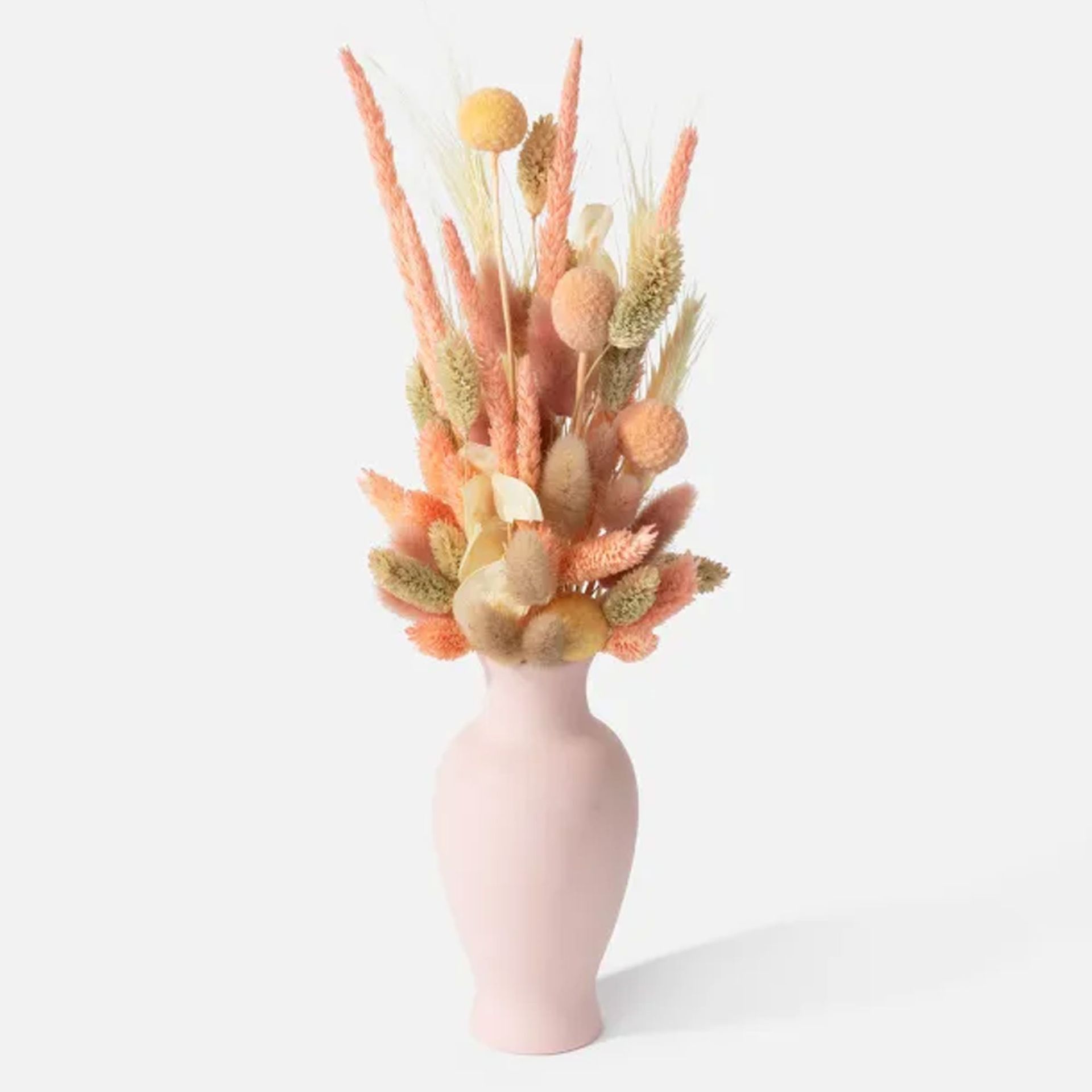 Celebrate love that lasts with this dried flower bouquet . We love this inventive display from Urban Stems which also comes with a matching matte pink vase.