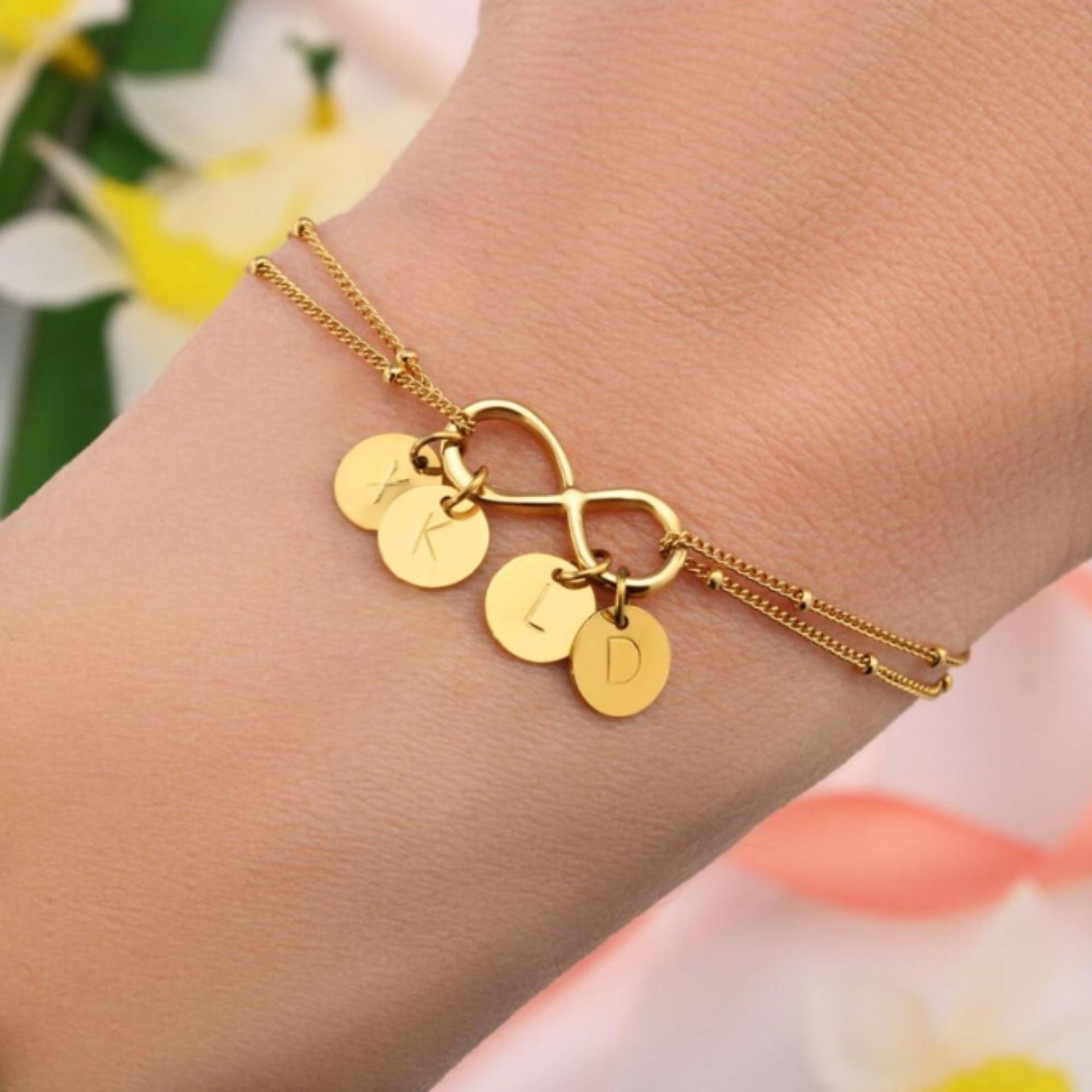 Matching friendship bracelets, such as these golden initial charm designs from Etsy, can make for the most special of Galentine's gifts.